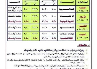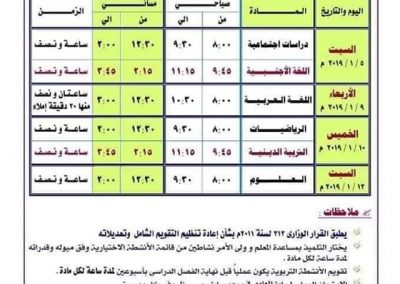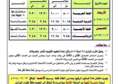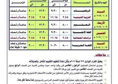 الصف الرابع والخامس والسادس يبدء من ٥ يناير حتى ١٢ يناير .
