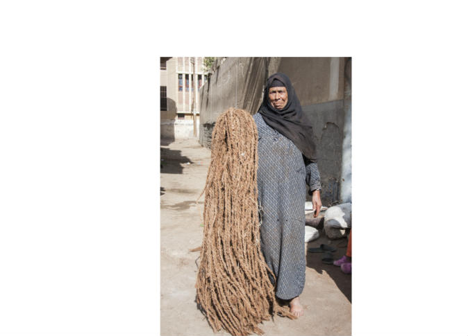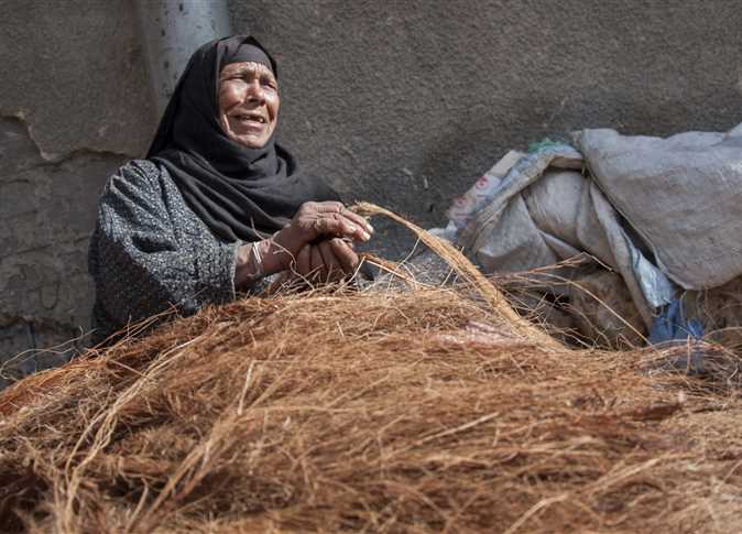 أما «بهية محمد»، فتعمل منذ أكثر من 30 سنة في صناعة الليف والمقاطف، وتقول إنها تشتري الليف بعد تقليم النخيل، وثمنه 30 جنيهًا، وتستخدمه في صناعة المقشات والمقاطف، مؤكدة أن العمل يتم على 3 مراحل رش الليف بالمياه ثم تقطيعه ثم غزله.