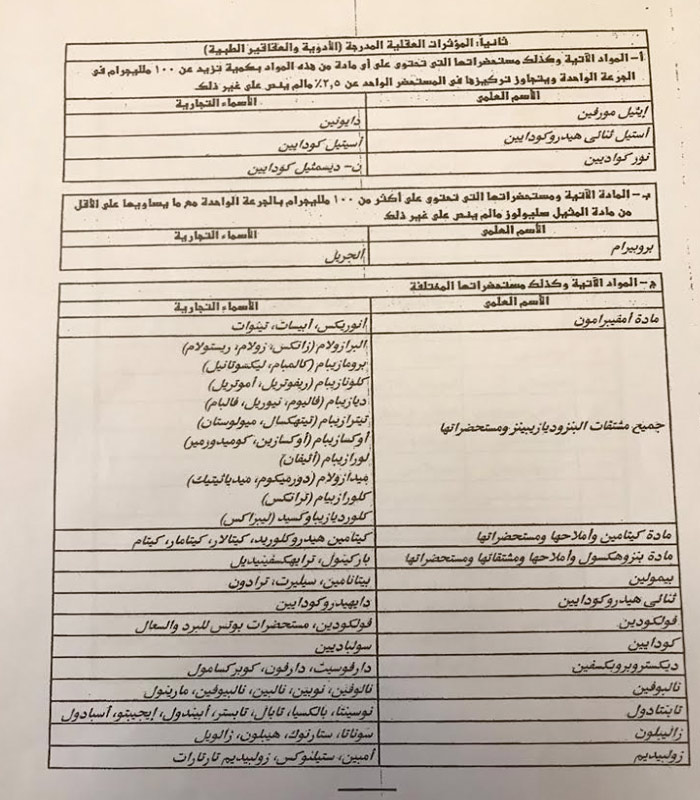 وأهابت وزارة الخارجية بوسائل الإعلام المصرية توعية المواطنين المسافرين إلى المملكة من خلال تعريفهم بالمواد المخدرة والعقاقير الطبية المحظورة بموجب القوانين واللوائح السعودية والمدرجة في الجدول المرفق.